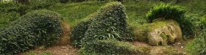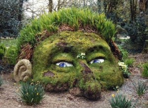 This morning I came across an idea that appealed, however. A friend posted these pictures on Facebook and I have tried to find out where this garden is, to no avail. I find them entrancing! The eyes, particularly. I can easily imagine looking out across the lawn to meet this stony, but curious gaze. I would call him The Well-Guard, and he would probably scare my daughter spit-less. (I am not exactly cackling here, but…close.) I doubt he will scare the deer away, but I have a fertile imagination, I will make up stories about him, nonetheless.