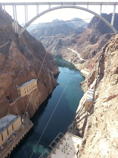 The day before, we visited another of my favourite places: Hoover Dam. Built in the early 1930s, it’s considered one of the seven wonders of the industrial world. There are many reasons why it qualifies; the amount of concrete poured, the thickness of the dam, the height, the audacity of the project, the fact it was completed in just five years. Five years. I think what astounds me is not only that the dam has paid for itself–it carries no construction debt–it continues to run at no cost to the tax payer, year after year. They don’t even siphon off any of the electricity they produce to run the lights inside. They have separate turbines for their own power. The place is nearly 100 years old and a model of efficiency rarely seen in the modern world. That, alone, makes it a wonder.