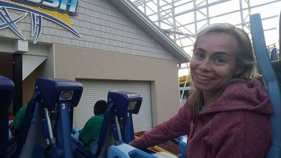 Shuffling through the turnstiles, I battled with the usual pre-coaster jitter. Holy crap, I’m going to die. The rails would buckle and twist just as my car hit that crucial turn. My harness would fail. My heart would slam to a stop and refuse to beat—ever again. I wished I’d had surgery, or that I was pregnant. Anything to get out of the ride. Beside me, Husband bounced on his toes, gripped my hand and smiled that smile he smiles when he’s really, really pleased.