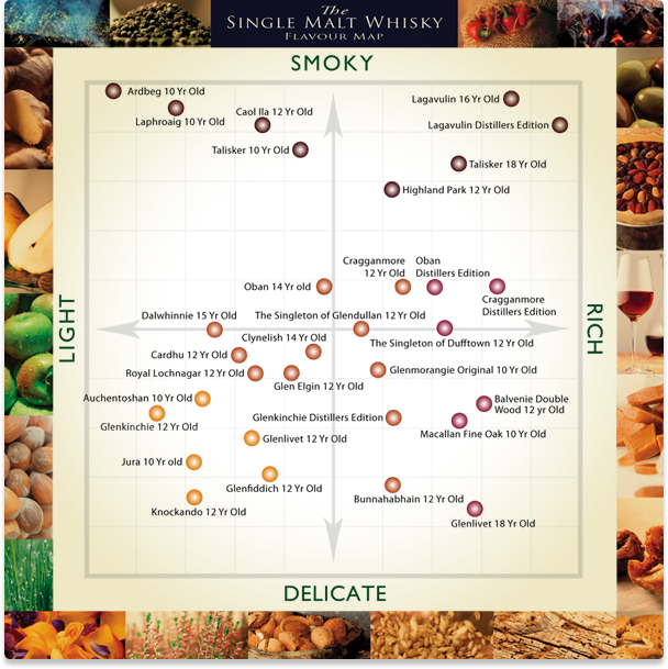 This was my favourite of the night. Aged in Spanish sherry casks, the GlenDronach had a darker colour than most of the Scotch we tasted. It also had a very rich and distinctive aroma. It smelled like sherry. The flavour was cherries and chocolate. And good single malt, of course. Interestingly enough, I think this one fared less well with the rest of the participants. They thought the flavour too strong. It is a rich and smoky Scotch—which I prefer. I loved it. I don’t know if I’d drink it all the time—or replace my beloved Glenfiddich with it. But I’d keep a bottle on hand for when I wanted something with more punch.