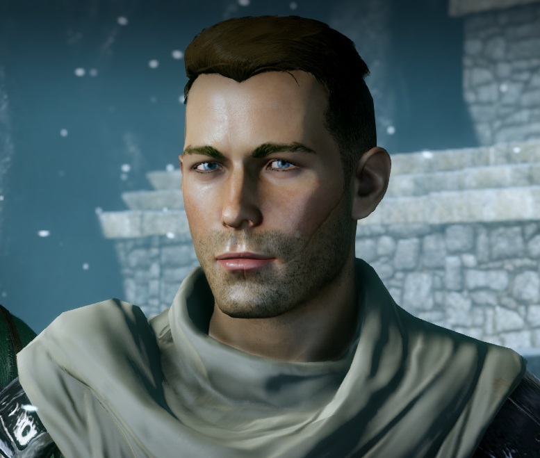 The Frostback Mountains are cold. There is snow everywhere. Frozen lakes groan beneath the rime. I would have cautioned Max against licking his lips in such temperatures, but I never actually saw his tongue swipe his glossy mouth. Something else was making his lips shine. Sensibly, I could assume he carried a tub of rendered animal fat (no cherry Chapsticks in Thedas). He was rather a pretty boy and obviously preferred not to let his lips chap. But I was going for realism here. I couldn’t have Max halting the Inquisition to reapply his lip gloss.