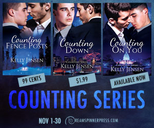 At the end of every post, I’ll be asking a question. Leave a comment with your answer (and your email address), and complete the Rafflecopter to enter! There are two prizes, both available internationally. One winner will receive $15 (US or equivalent) to spend at the Dreamspinner Press store. A second winner will receive the entire Counting series in ebook format, gifted through the Dreamspinner Press store.