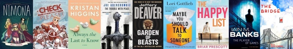 I can’t choose between these two books, both of which started life as webcomics. I read Check, Please (books 1 & 2) online for free, first, then ordered the paperback compilations for my keeper shelf. Nimona, I ordered as a gift for a friend’s daughter and ended up reading myself. (I had to order another copy for the gift!)