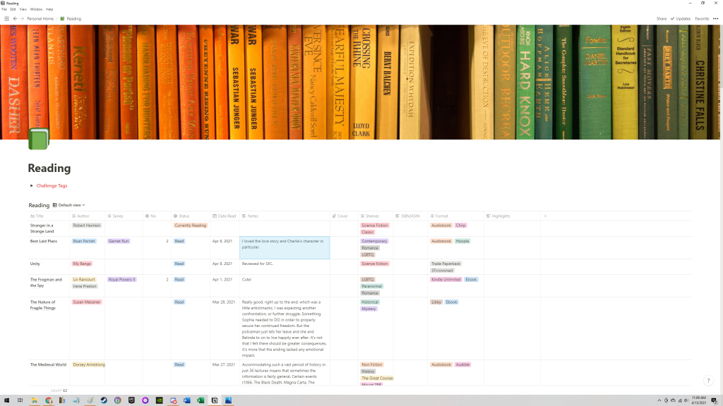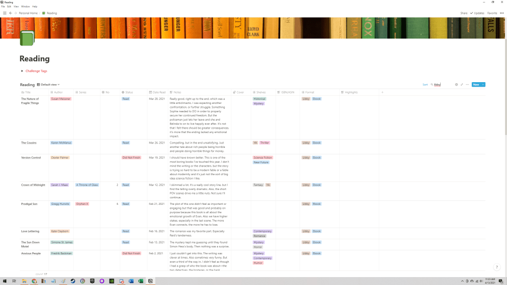 You probably have to be into data and sorting data to experience the true joy of creating your own reading tracker, or for much of anything to do with Notion. But for those of us who are, it’s a thing of beauty. If you try it out, let me know and send me a link! I’d love to see how you organize your data.