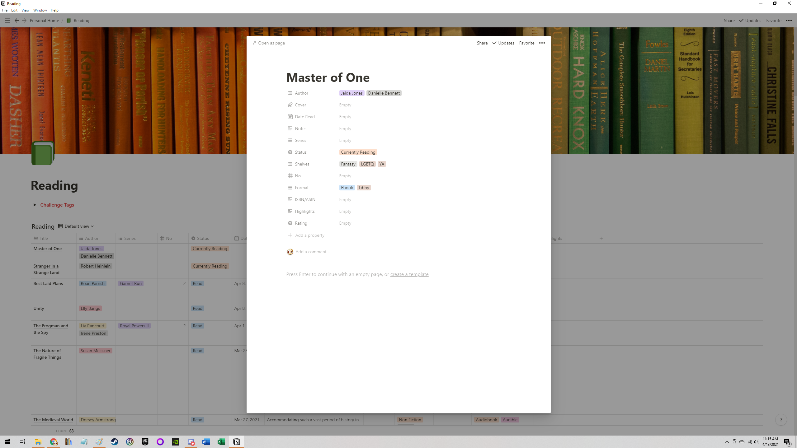 You probably have to be into data and sorting data to experience the true joy of creating your own reading tracker, or for much of anything to do with Notion. But for those of us who are, it’s a thing of beauty. If you try it out, let me know and send me a link! I’d love to see how you organize your data.