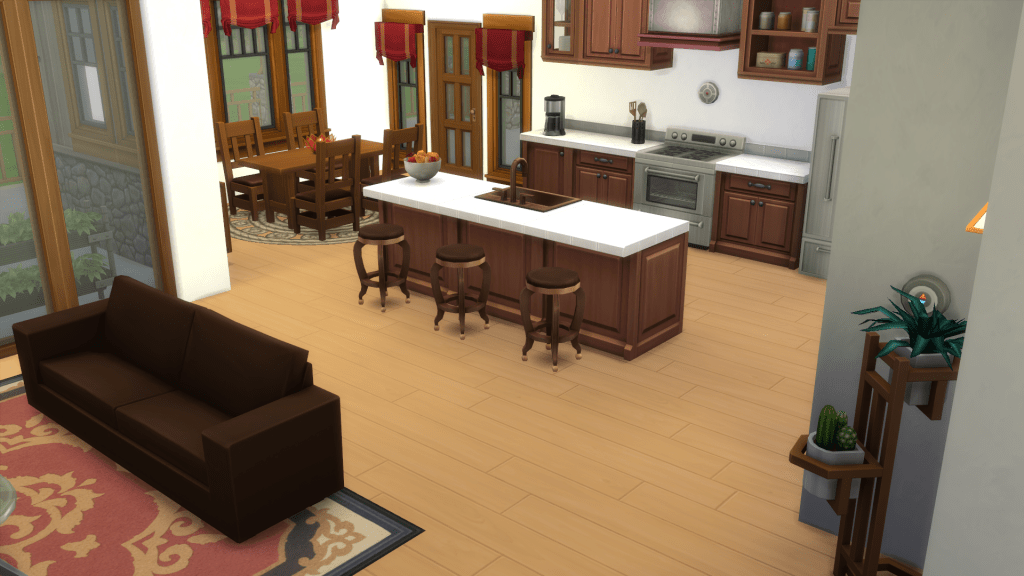 For The Sims, I started with a 50×50 lot to give myself plenty of space. The final build fits into a 50×40 lot as well.