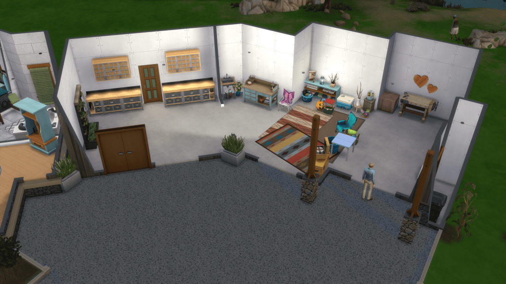 It’s big and promised the longed-for challenge, especially when it came to roofing, but the interior would be homey and could be adapted to both games—particularly the four-car garage, which I would repurpose into a smelting center for Valheim and a skills center for The Sims.