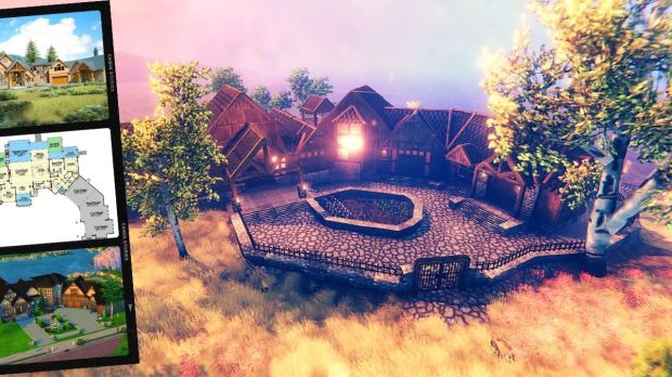 In both builds, I changed the purpose of one or two rooms to better suit the game and my style of play. Obviously, The Sims house, being ‘modern,’ follows the plan more closely, including a laundry room, a den, and second and third bathrooms. In the Valheim build, the den is an armory and the guest suite and laundry became the woodshop. I did put a guest suite on the second floor in the Valheim build, though.