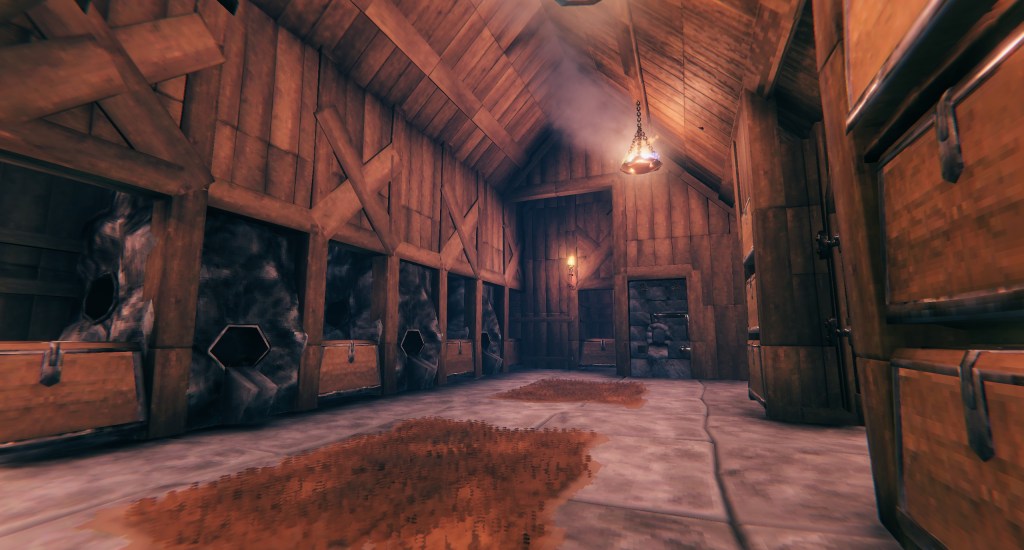 Similarly, I thought the bathroom might be more of a challenge in Valheim as my Viking hasn’t bathed once since we started this thing. But with the new update, I had options—options that required combining the walk-in closet and bathroom in one large space, which I really like.