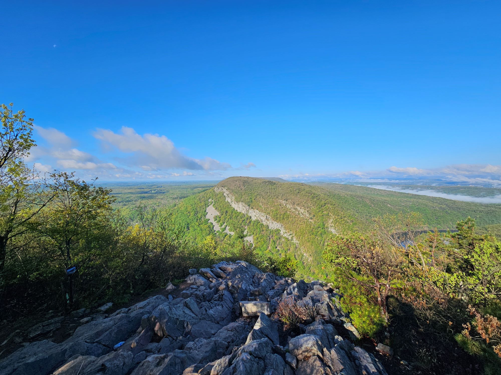 What I like (love) about these trails is the effort involved. It’s only about 1.3 miles to the summit of Mount Tammany, but there’s this pesky 1200ft elevation gain that means you’re pretty much climbing for most of the hike. Mount Minsi is a slightly less challenging climb with 1000ft of elevation spread over around 2 miles. So, less of an uphill battle. Still, both are challenging hikes (both listed as hard in the AllTrails app). The view at the top rewards your effort—it’s spectacular.